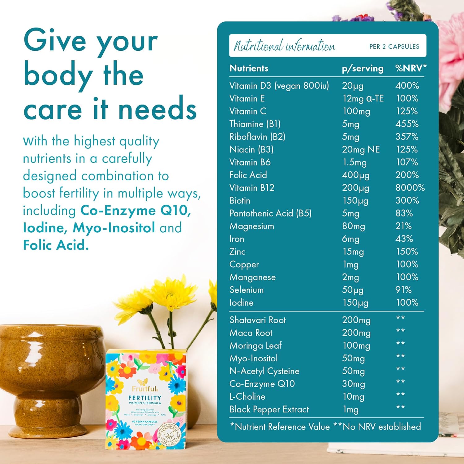 That’s why we created Fruitful® Women’s Fertility Formula—with bioavailable nutrients and botanicals traditionally used for reproductive health. Made in the UK, additive-free and in easy-to-take vegan capsules, it’s designed to support you as you prepare for pregnancy with confidence.